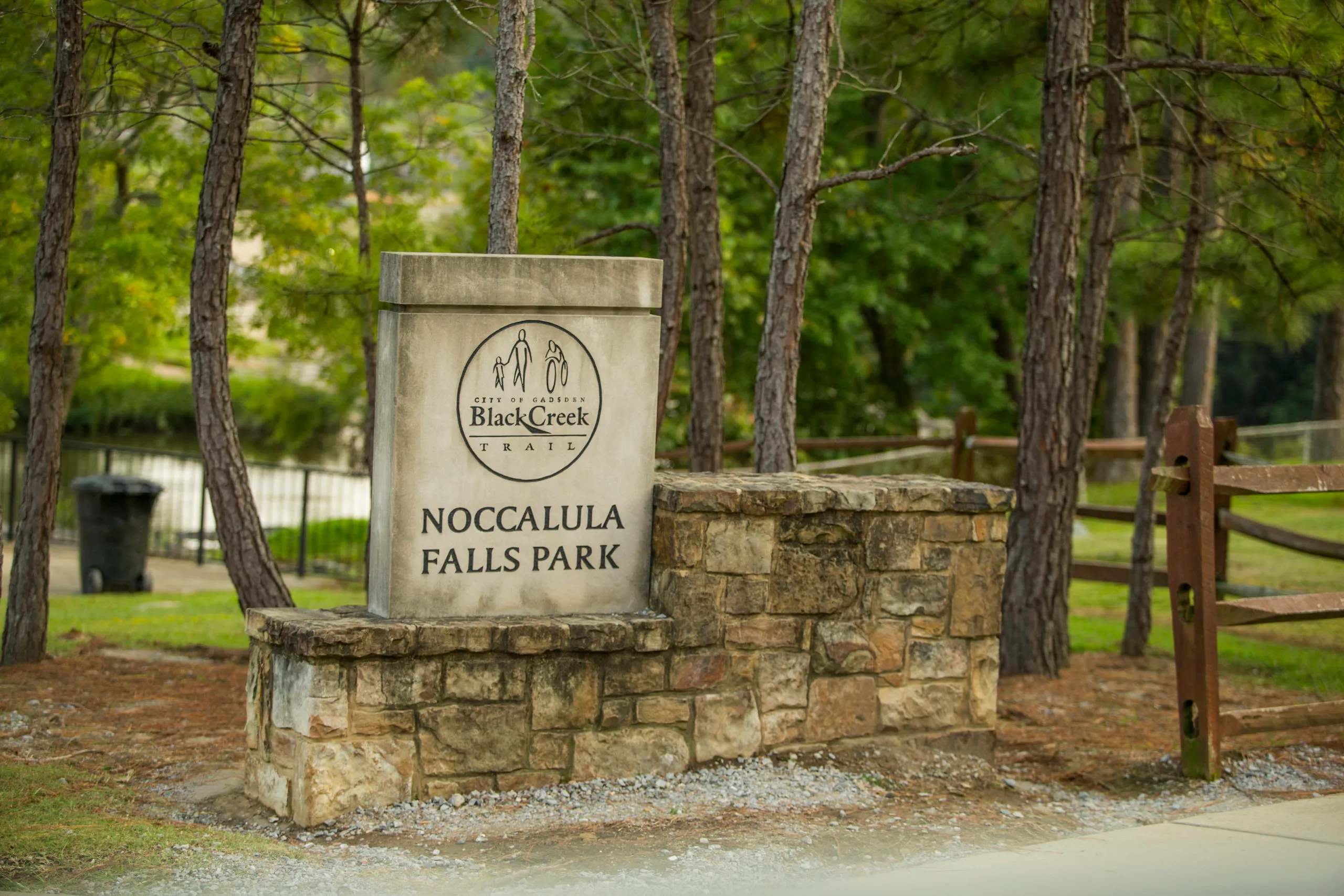 The Black Creek Trail is a 1.7-mile crushed stone path with beautiful scenery along the Black Creek Gorge as it works its way down from Noccalula Falls campground to Black Creek Road. The trail starts at Noccalula Falls Wedding Chapel. Intersecting the main trail are over 15 miles of groomed, single-track trails perfect for walking, running, and mountain-biking.