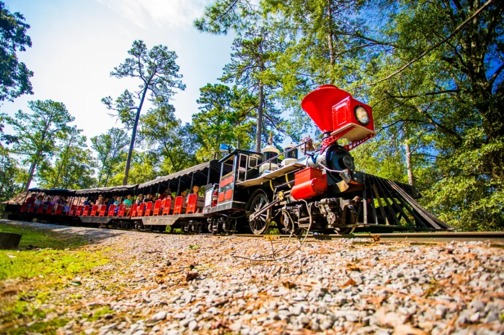 Paved walking trails wind through the park property starting at the Admissions Pavilion. For a low admission price, you can take advantage of unique park amenities. In the park are beautiful rocks and gardens with an array of shrubs and flowers that may be viewed as you walk the park’s paved trail system or rest your feet as you ride on the authentic Huntington miniature train.
