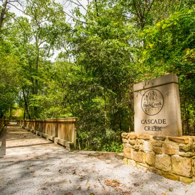 The Black Creek Trail is a 1.7-mile crushed stone path with beautiful scenery along the Black Creek Gorge as it works its way down from Noccalula Falls campground to Black Creek Road. The trail starts at Noccalula Falls Wedding Chapel. Intersecting the main trail are over 15 miles of groomed, single-track trails perfect for walking, running, and mountain-biking.