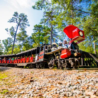 Paved walking trails wind through the park property starting at the Admissions Pavilion. For a low admission price, you can take advantage of unique park amenities. In the park are beautiful rocks and gardens with an array of shrubs and flowers that may be viewed as you walk the park’s paved trail system or rest your feet as you ride on the authentic Huntington miniature train.